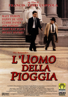 Rudy si è appena laureato in legge, non è ancora procuratore ma lo diventa quasi subito. Vive a Memphis e si dà da fare. Si trova a patrocinare la famiglia di un malato di leucemia: l’assicurazione non vuole riconoscere il legittimo risarcimento. Rudy va avanti. Quando si trova di fronte al micidiale corporativismo delle assicurazioni, non si fa intimidire da una schiera di avvocati da “mille dollari l’ora” e affronta la sua battaglia. Alla sua prima causa, ma col furore del Davide onesto, il ragazzo vince su tutta la linea. La compagnia assicurativa, che era una vera associazione per delinquere, perde la causa ed è costretta al fallimento. Chi conosce John Grisham, l’autore del libro, sa che alla fine giustizia sarà fatta. Nelle sue storie ognuno ha esattamente quello che si merita. Gli onesti hanno la meglio sui cattivi, pure organizzatissimi. E mettiamoci Coppola, che racconta con la giusta tensione. Si esce dalla sala col magnifico senso liberatorio dei grandi film di un tempo. Coppola-Grisham, ovvero il fronte opposto ai maledetti tarantiniani. Teniamoceli stretti. Quando i buoni vincevano si diceva “succede solo al cinema”, poi non è più successo neanche al cinema. Grisham e Coppola ripristinano la speranza. Il film come sogno e benessere. Il cavaliere della valle solitaria è tornato. E la presenza della vecchina Teresa Wright (mito di Hollywood: Signora Miniver, I migliori anni della nostra vita) è un altro segnale di qualità, una garanzia rassicurante verrebbe da dire, senza corporativismi.